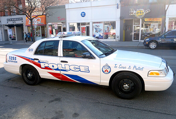A little while back there was a bit of controversy over the decision by the Toronto police to change the design of the police cars. The police chief wanted the fleet to look more “modern and sleek”. So the colours were changed from white with red and blue strips, as shown in the first image below figure 1A, to dark grey with reflective strips, which appears as either white or dark grey depending on lighting conditions, as shown in the second image figure 1B.